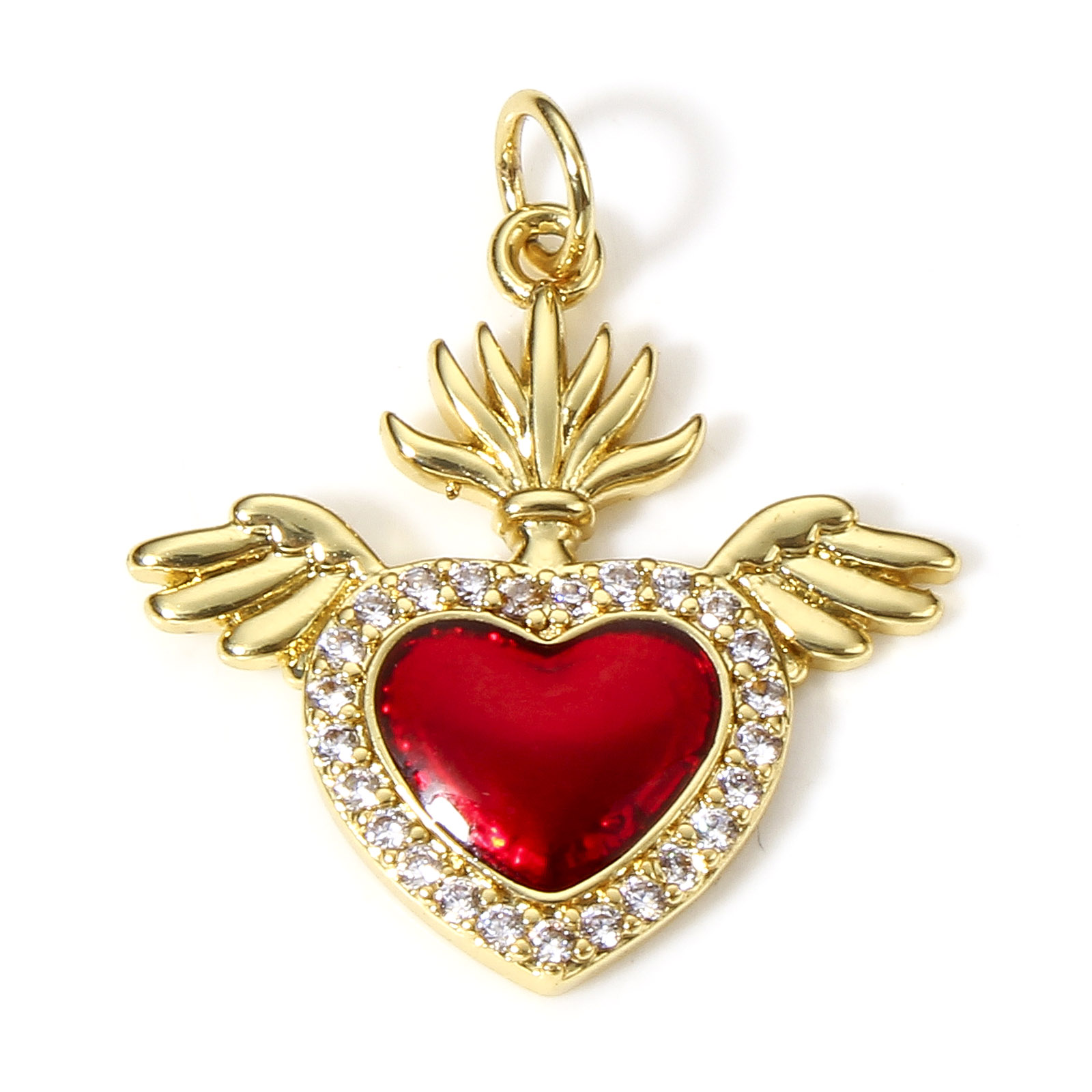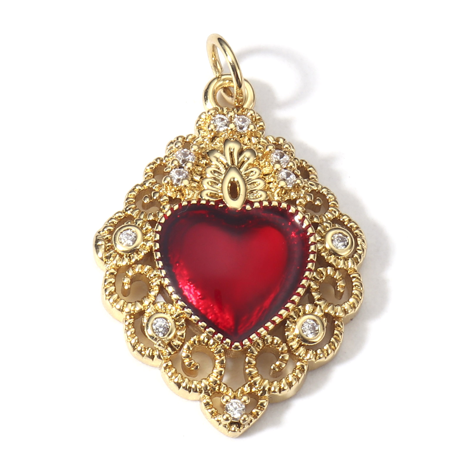 1 pieza de dijes de corazón religioso rojo clásico para la fabricación de joyas, colgantes Ex Voto de Color dorado, collar de circonia cúbica transparente DIY