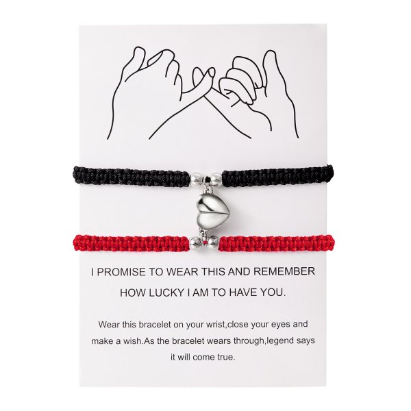 2 uds pulsera trenzada de cuerda roja Simple de la suerte para mujeres y hombres corazón romántico pareja magnética pulseras a juego joyería de amistad