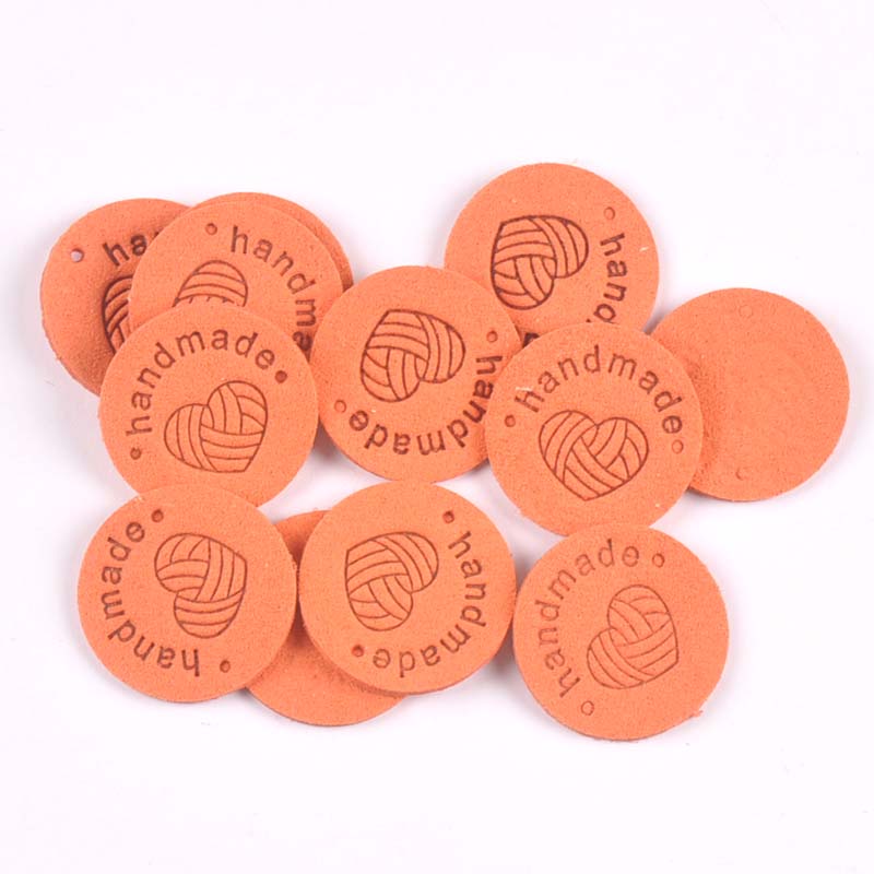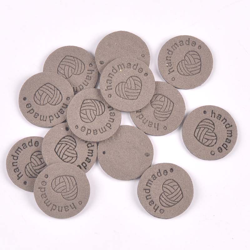 20 piezas, 2,5 cm, tela redonda de PU, etiquetas en relieve hechas a mano, etiqueta de bandera DIY para accesorios de costura de prendas cp3436