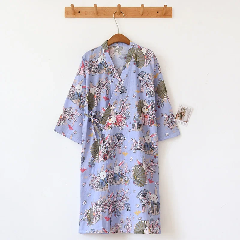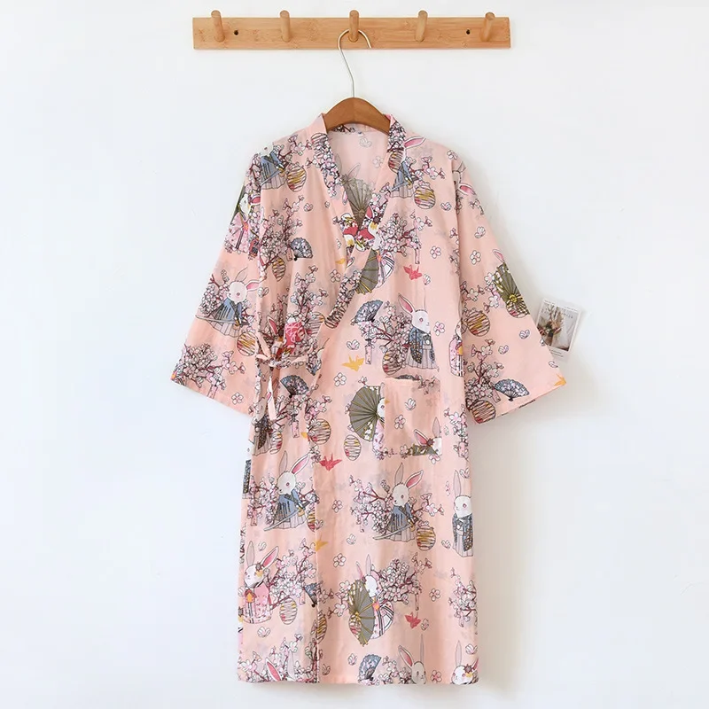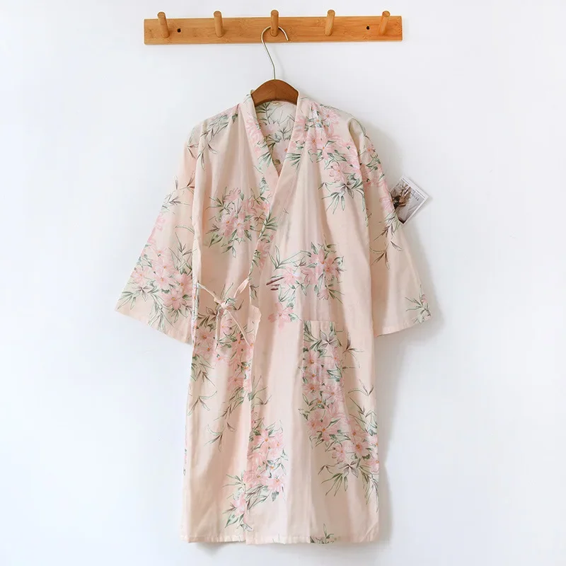 Albornoz tipo kimono de algodón para mujer, ropa de casa holgada, pijamas, batas para mujer, cárdigan estampado multicolor, ropa para dormir, bata para mujer