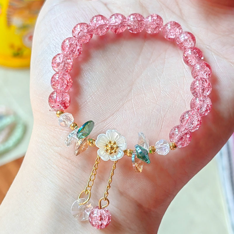 Bonita pulsera de cuentas de cristal verde para mujer, pulsera elástica ajustable con dije de flor de Lily Valley, joyería de cumpleaños y boda