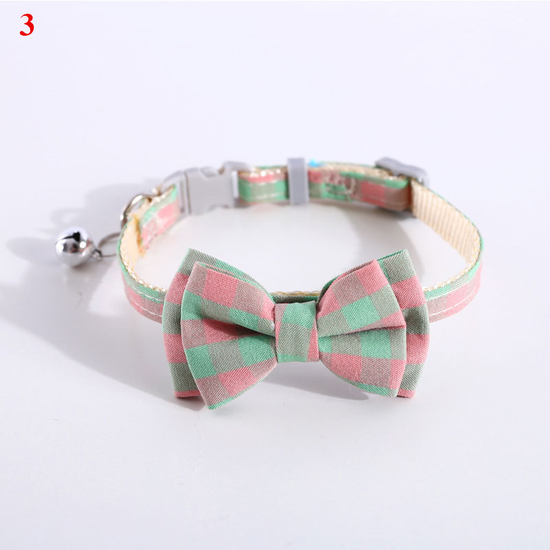 Collar de gato con lazo a cuadros para perros, Lazo de algodón con campana, Collar de gatito con hebilla de seguridad, corbata de cuello ajustable, accesorios para gatos
