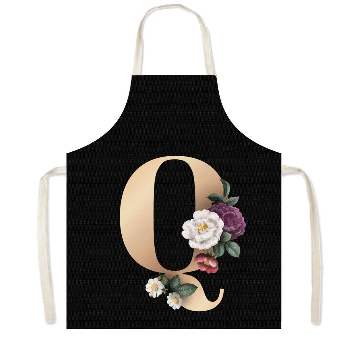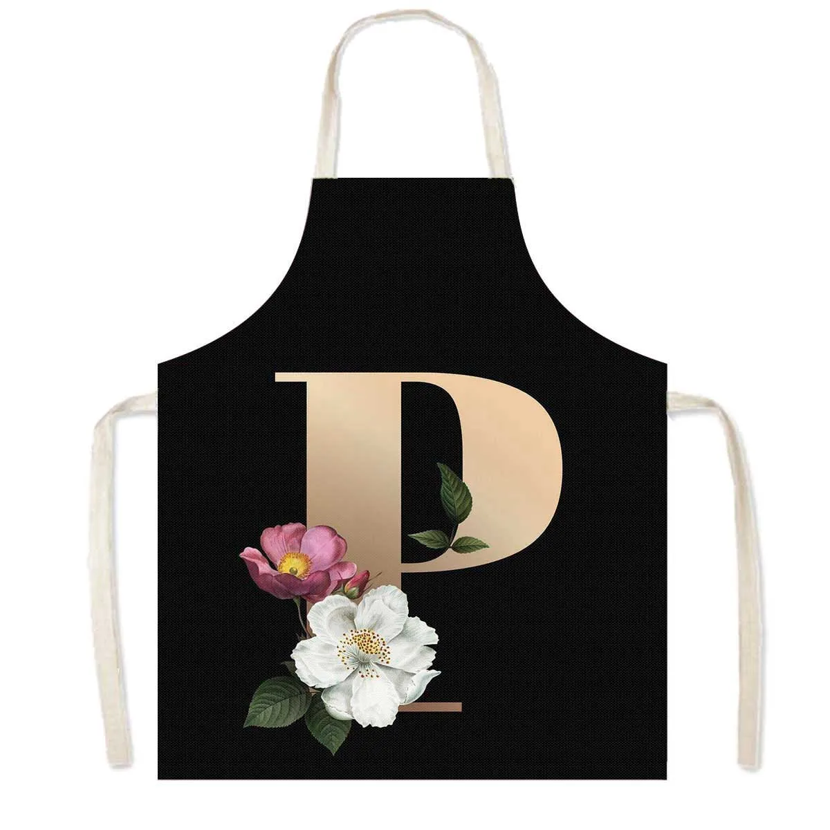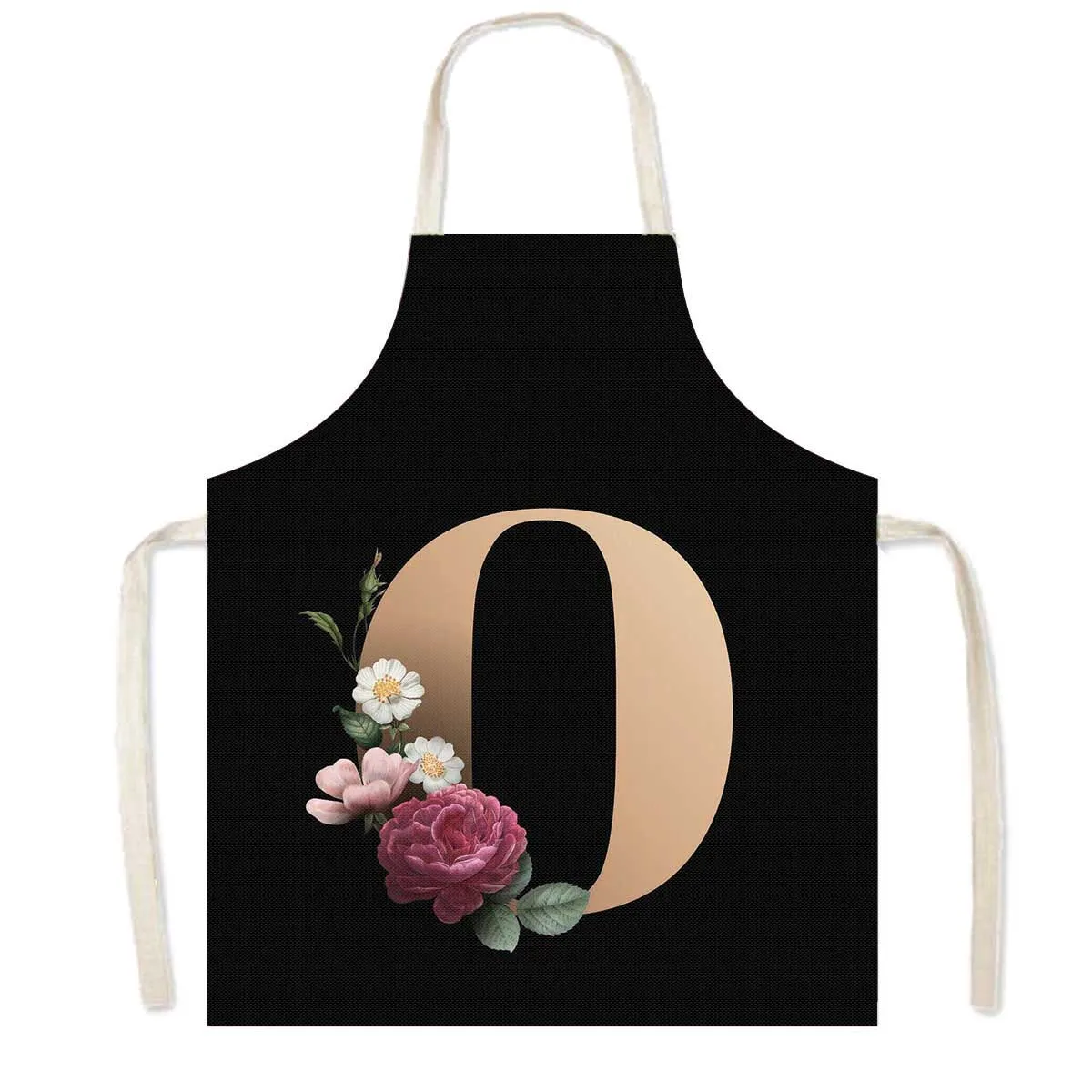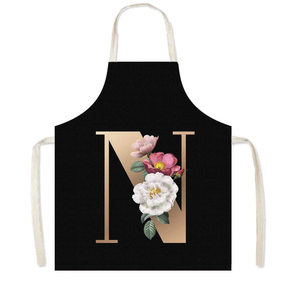 Delantal de cocina con estampado de flores y 26 iniciales, delantales de cocina con letras de A-Z para mujer, Chef de barbacoa, camarero, herramienta de limpieza para hornear en casa, delantal