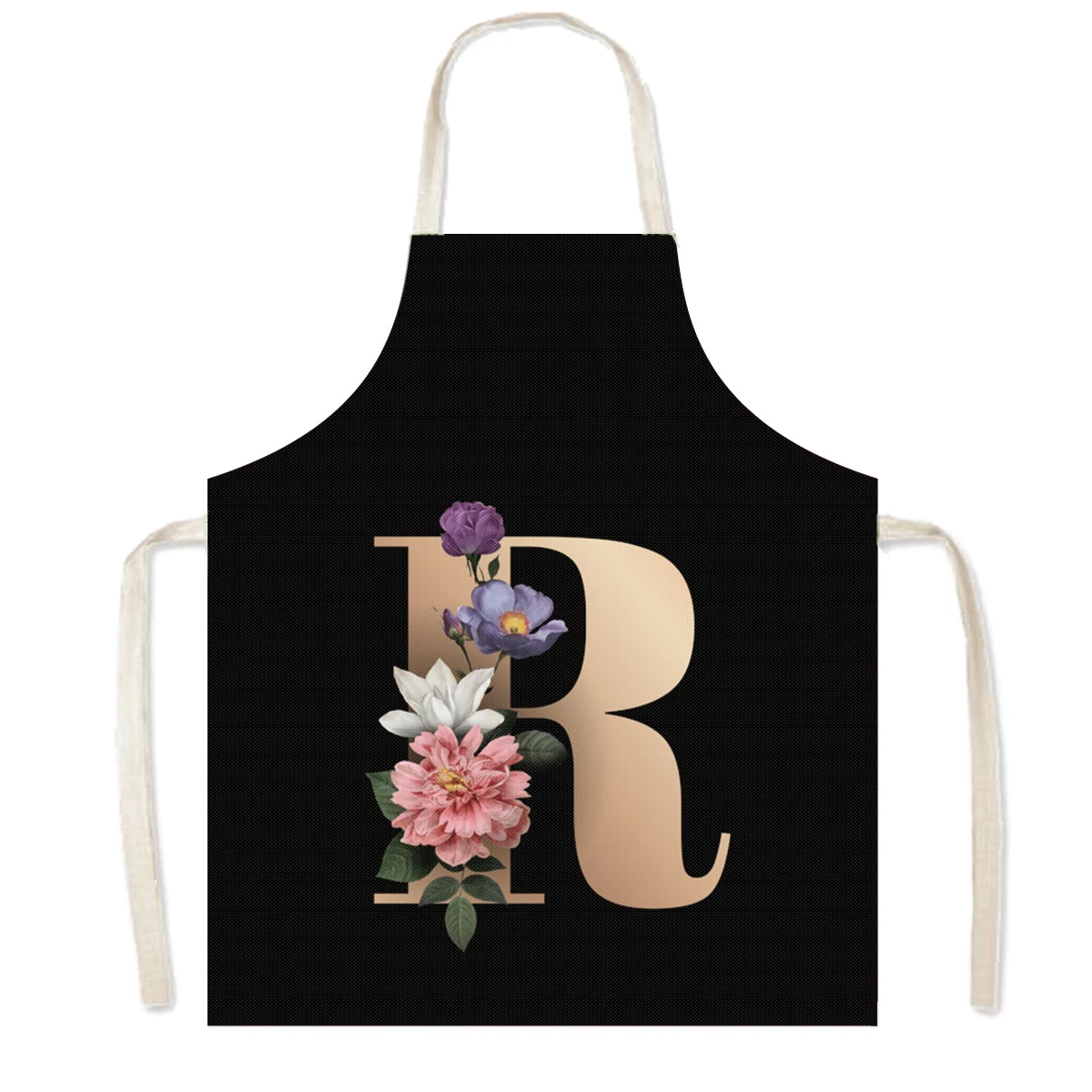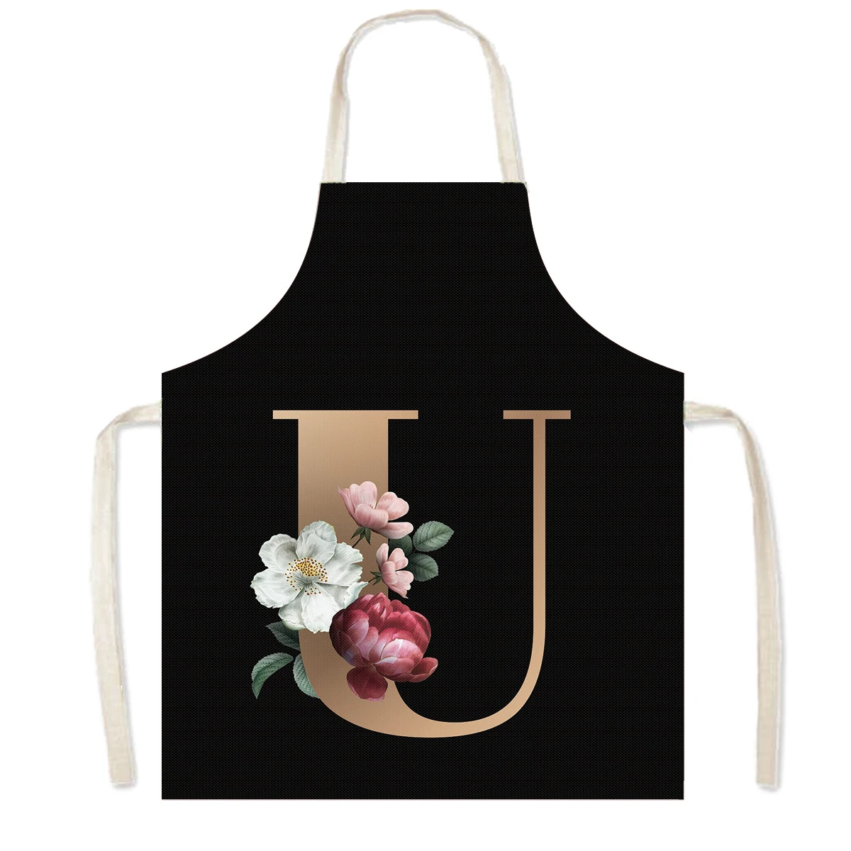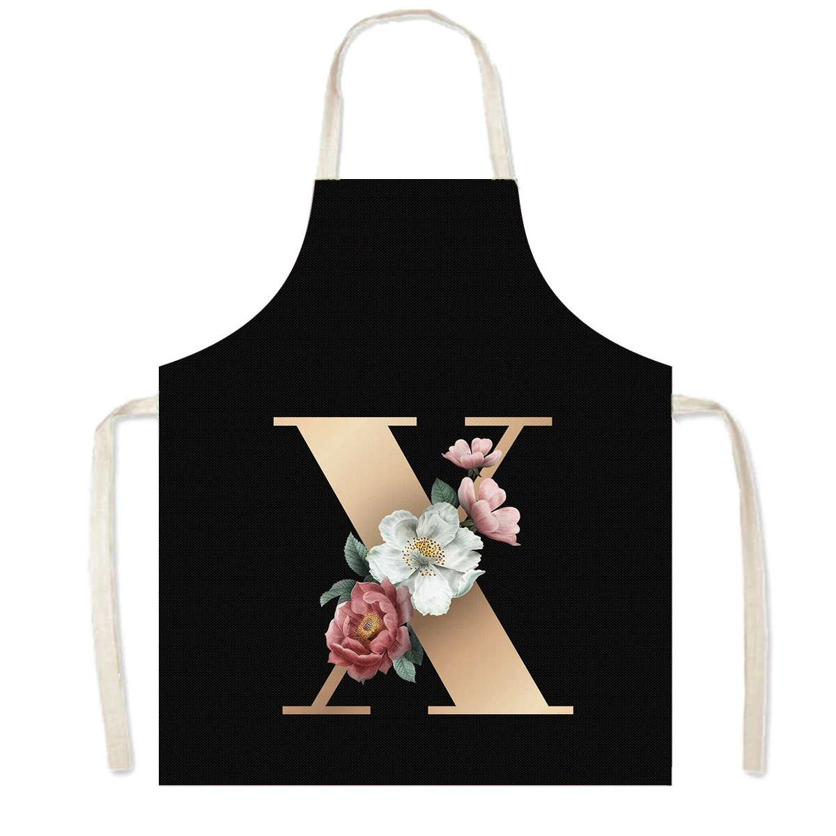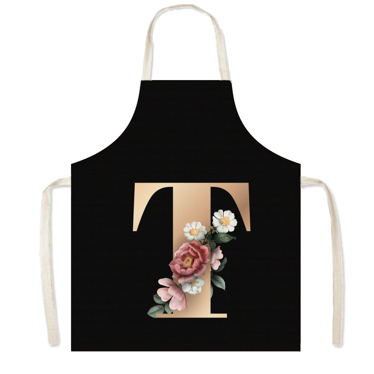 Delantal de cocina con estampado de flores y 26 iniciales, delantales de cocina con letras de A-Z para mujer, Chef de barbacoa, camarero, herramienta de limpieza para hornear en casa, delantal