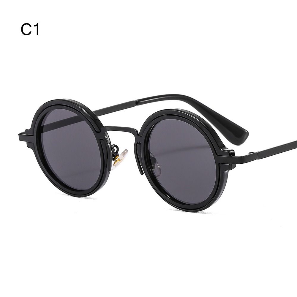 Gafas de sol de estilo Punk para hombre y mujer, lentes de sol con montura híbrida de Metal y PC, montura redonda, protección UV para tiro en la calle: Gris