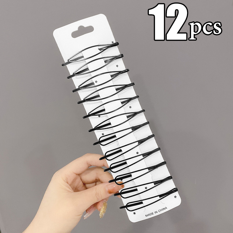 Horquillas onduladas para el cabello, pasadores negros de Metal, pasadores invisibles BB, accesorios para el cabello, 3/12 piezas