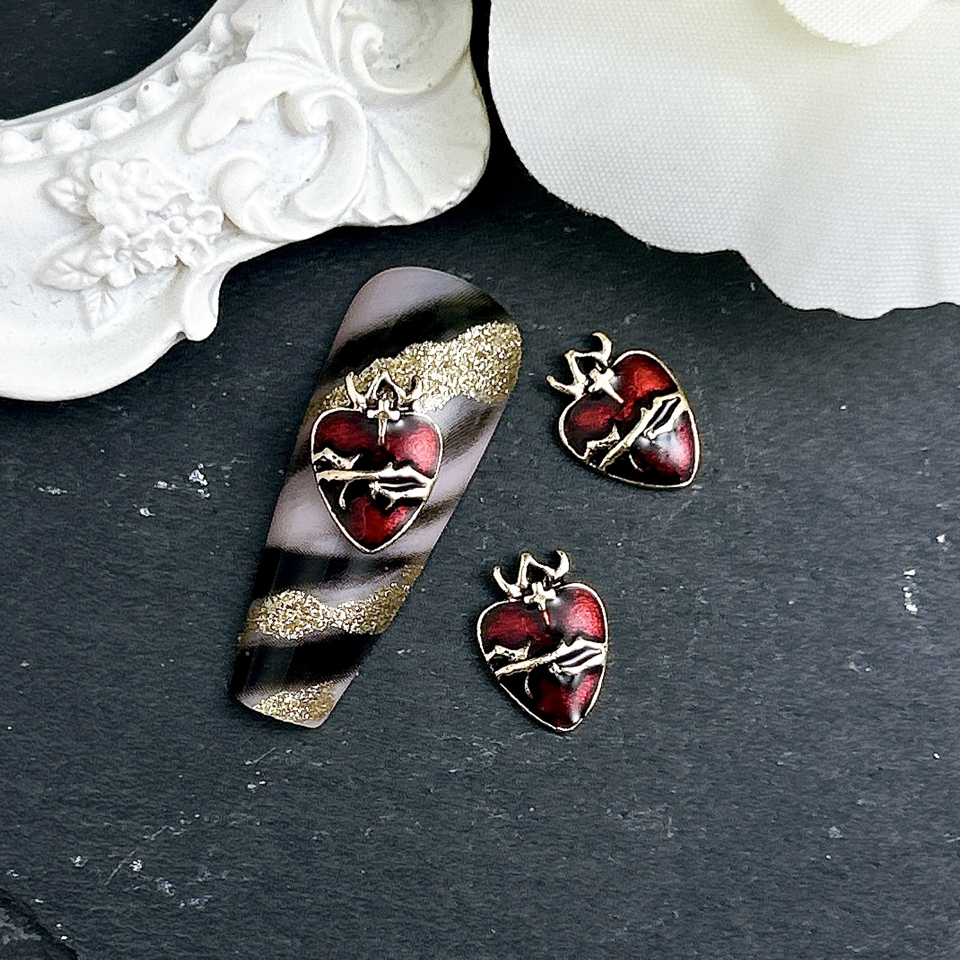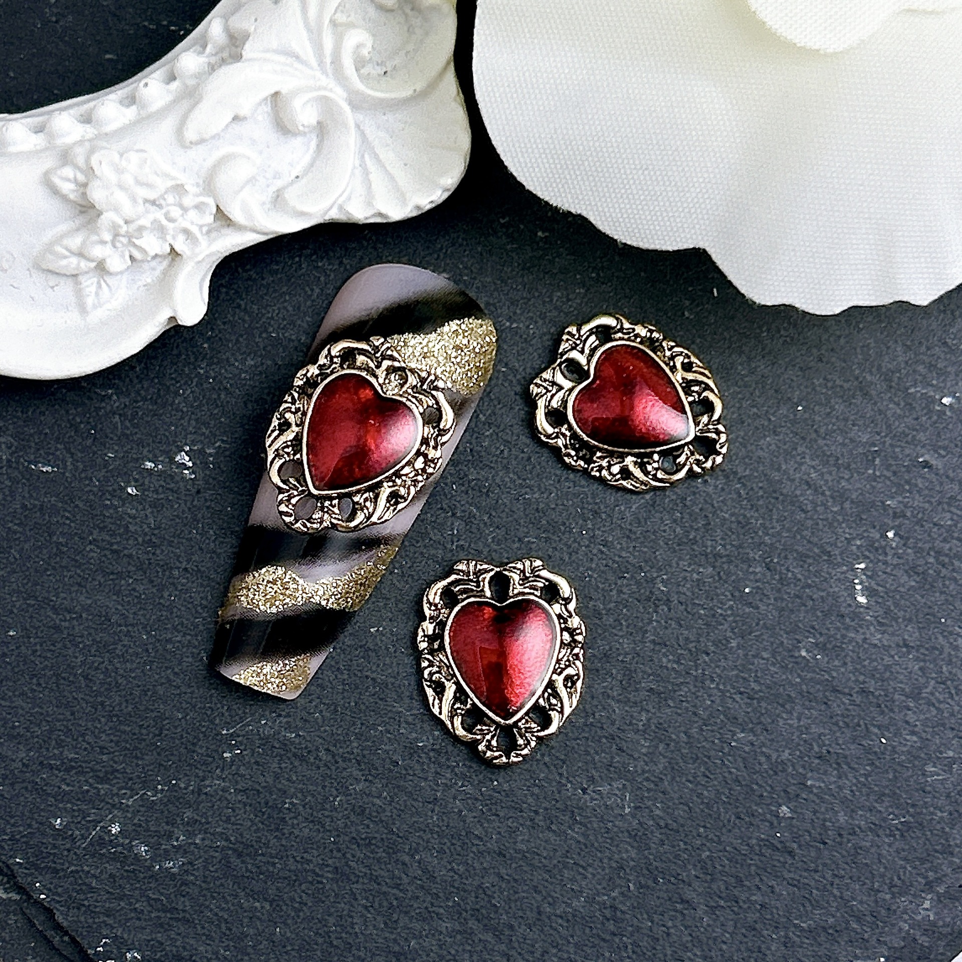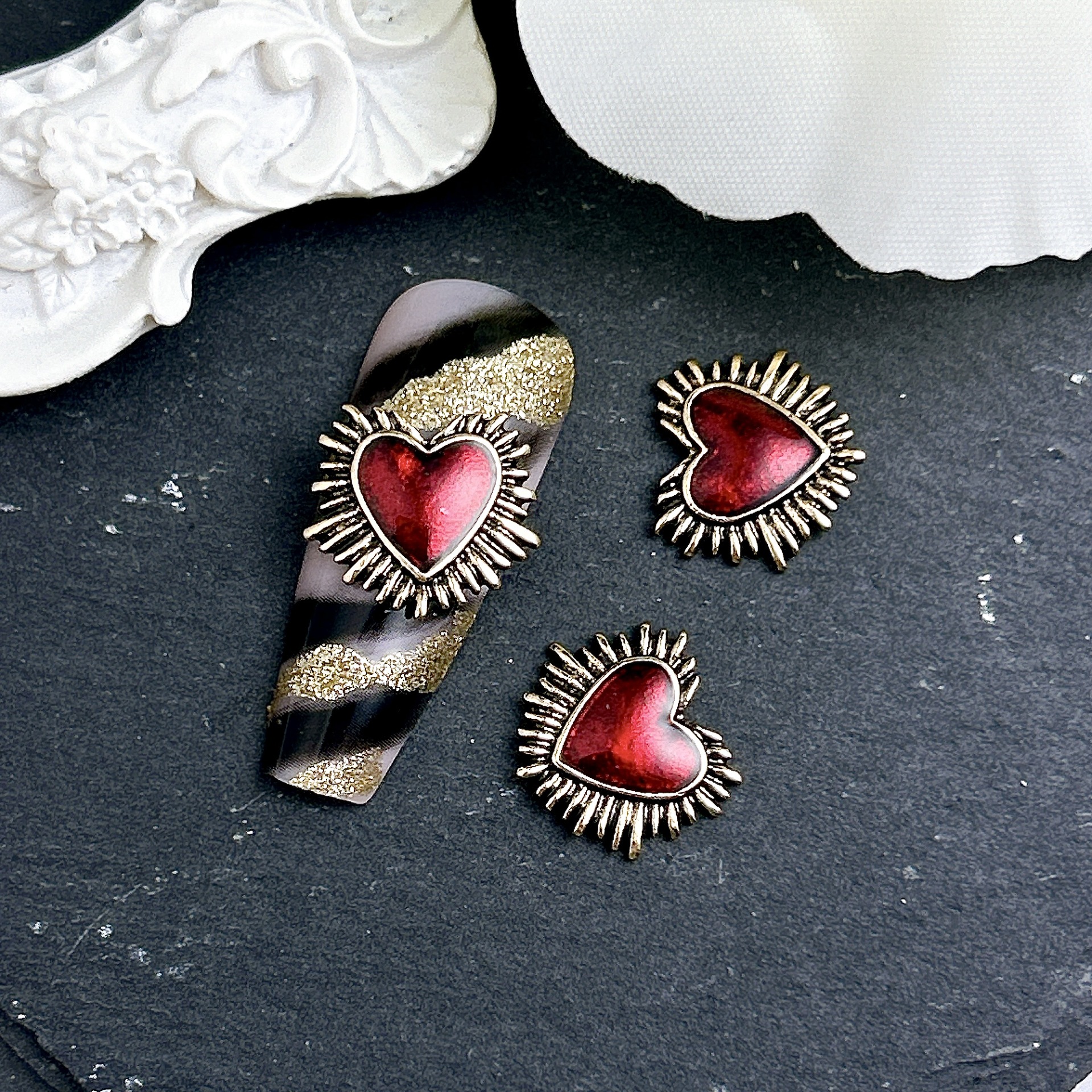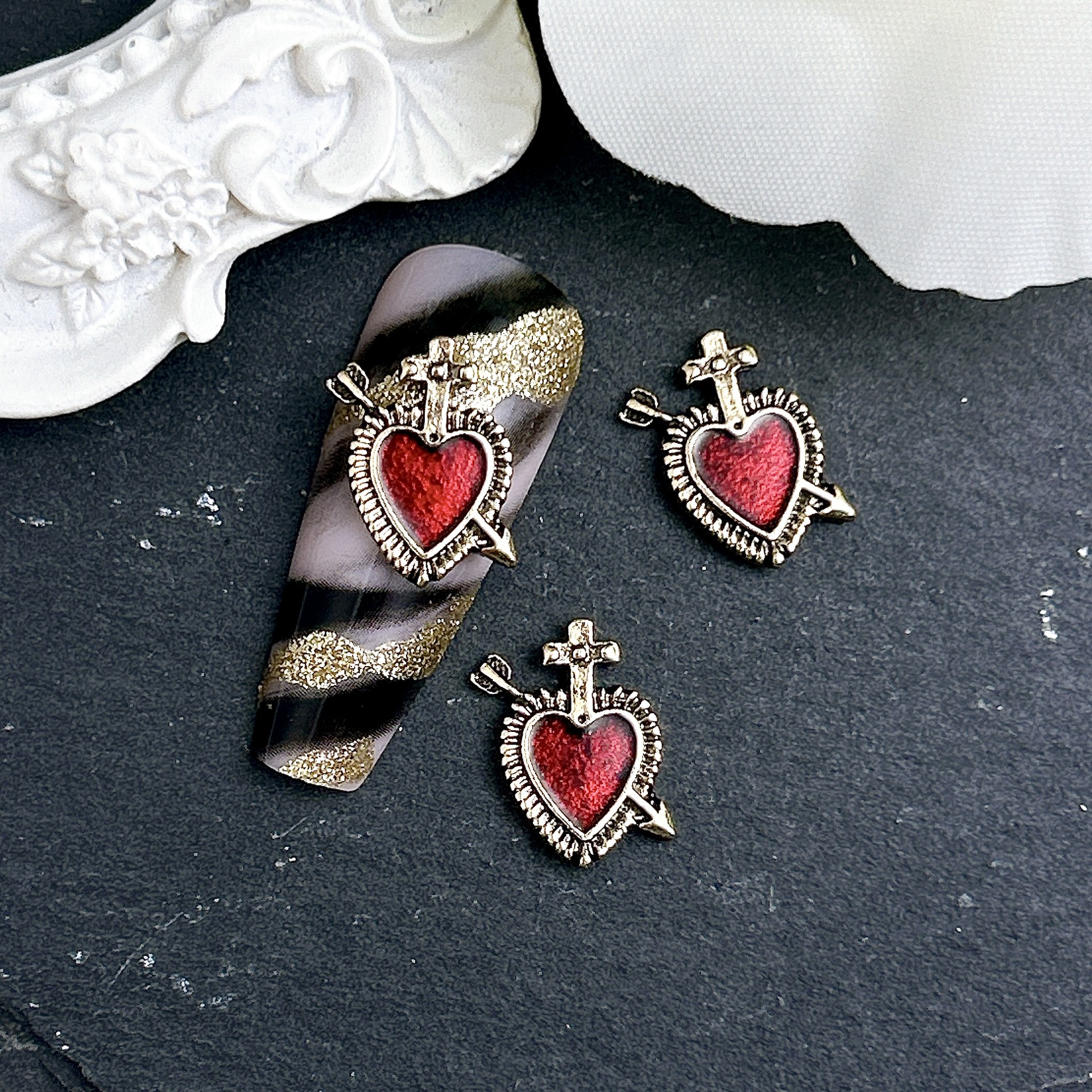 Nuevos dijes de aleación Retro para uñas con forma de corazón, Cruz de Metal 3D, calavera, prensa francesa, accesorios de decoración para uñas, manualidades DIY Y2K: Borgoña