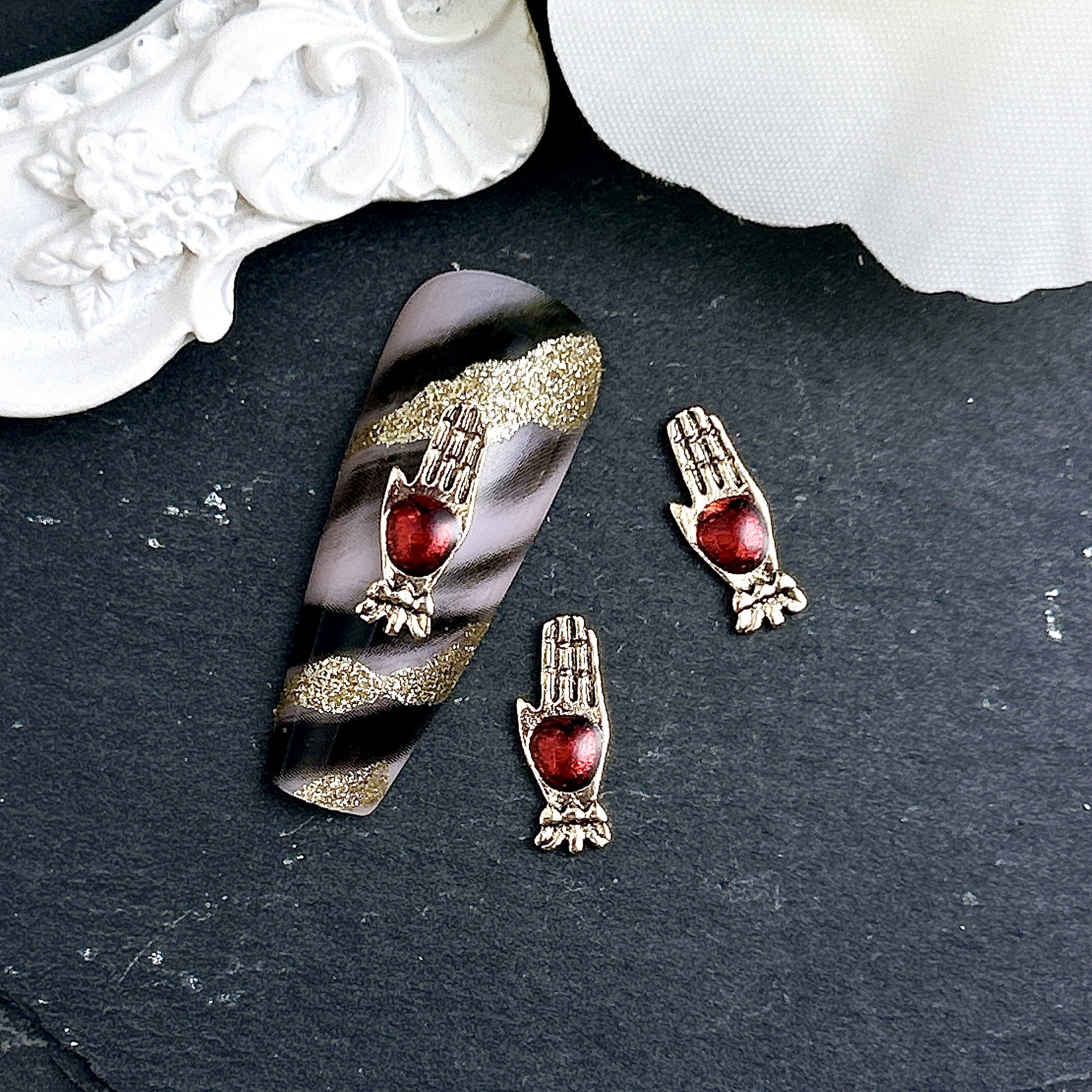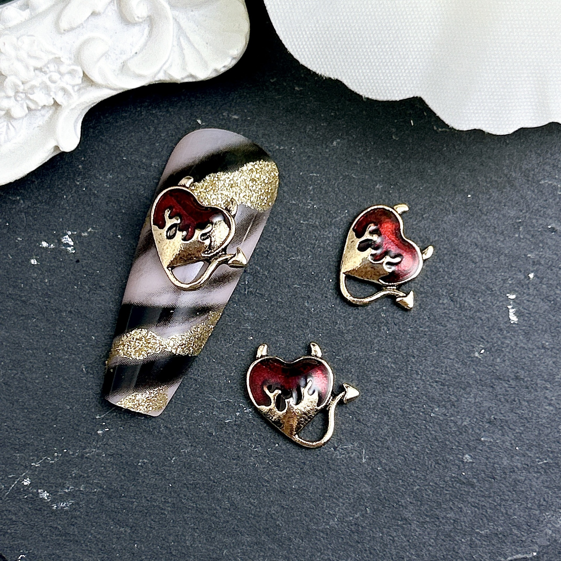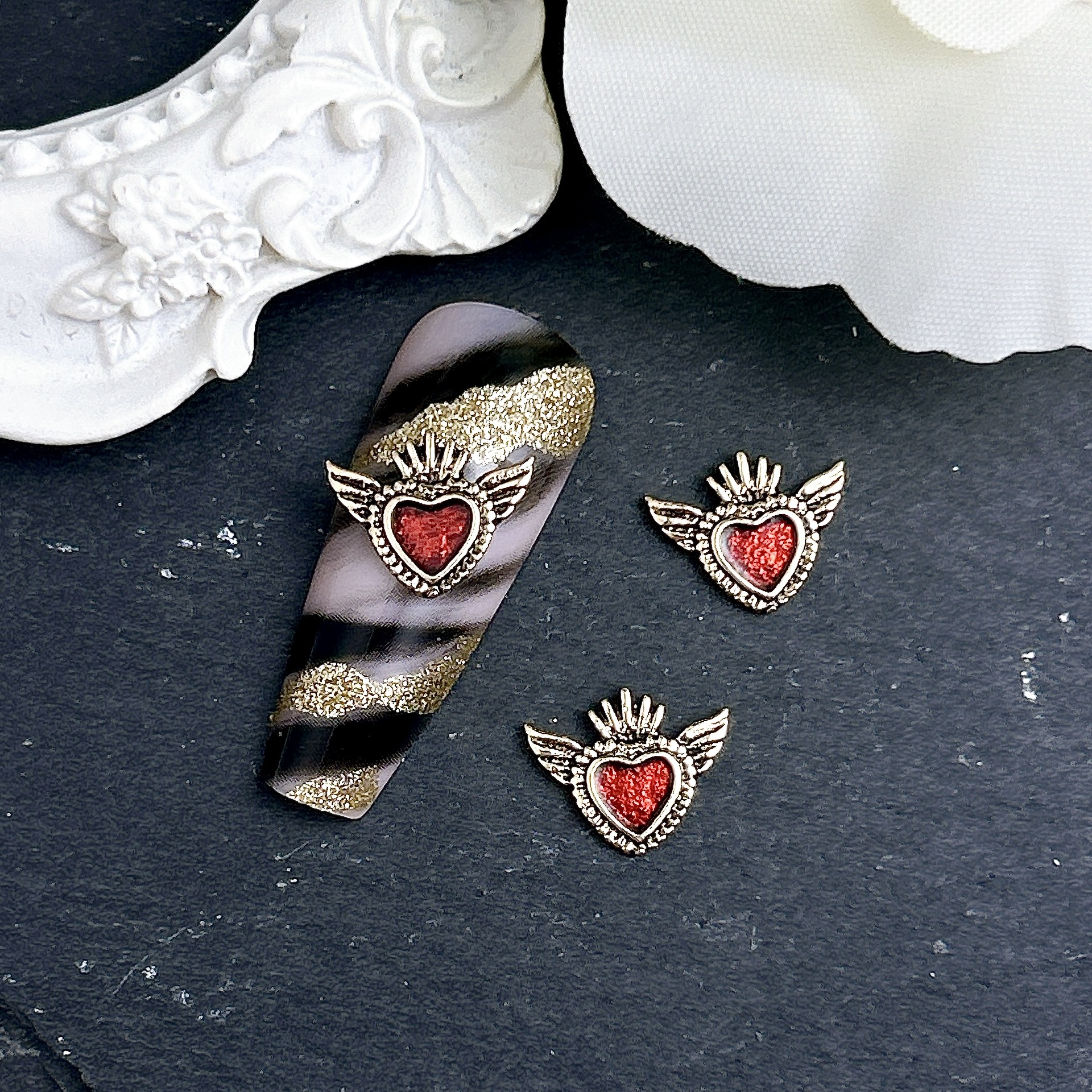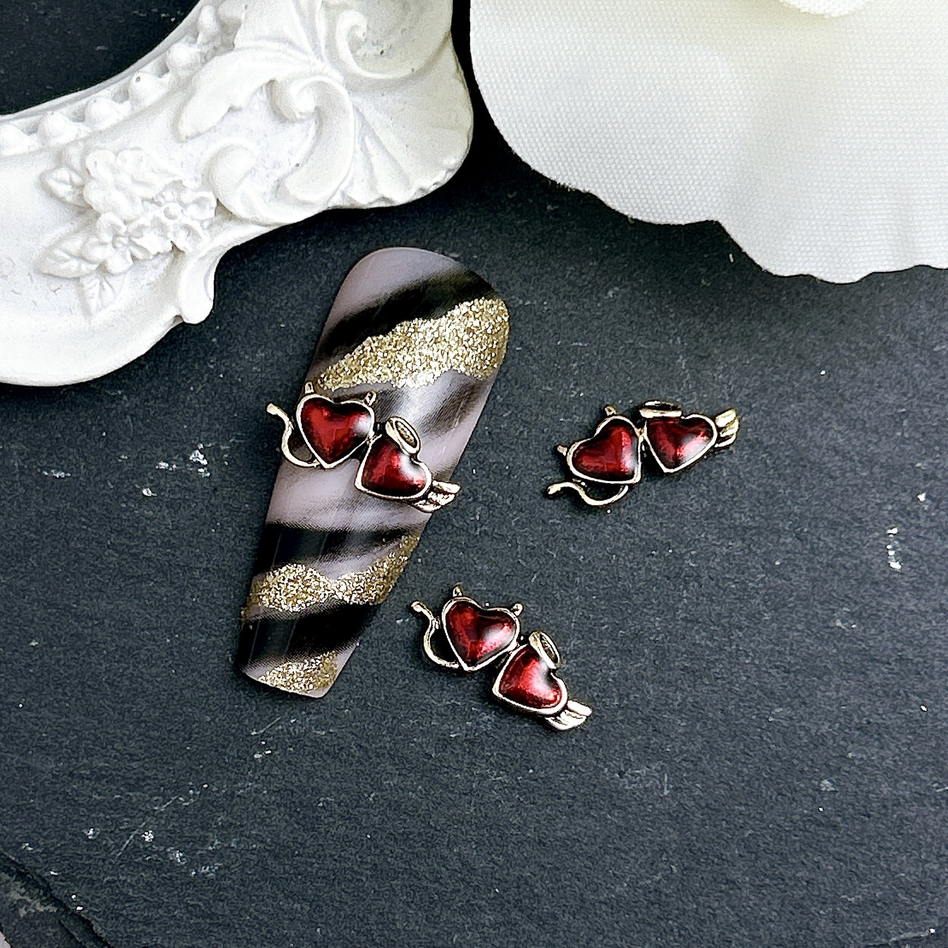 Nuevos dijes de aleación Retro para uñas con forma de corazón, Cruz de Metal 3D, calavera, prensa francesa, accesorios de decoración para uñas, manualidades DIY Y2K: Borgoña