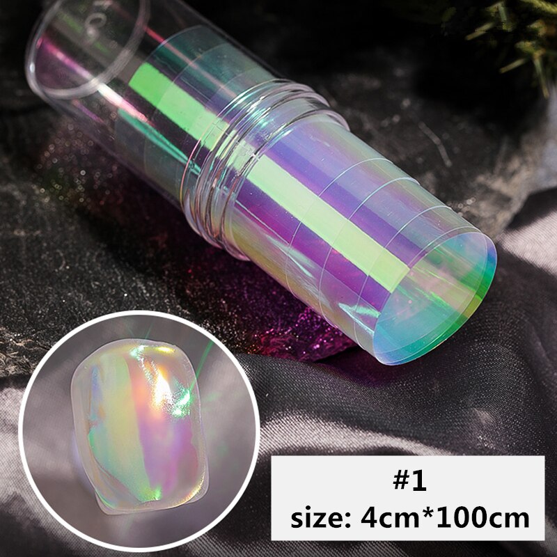 Aurora lámina de cristal para uñas, película adhesiva de celofán, de tendencia de uñas coreanas, cubo de hielo, decoración DIY, 100cm/botella