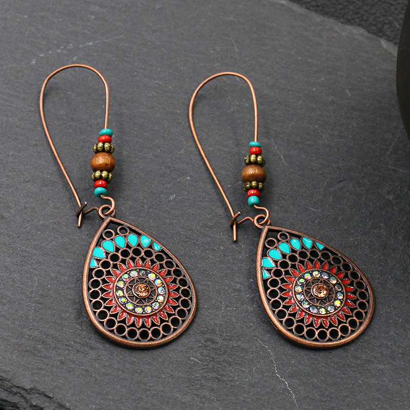 Pendientes colgantes con gancho para la oreja grande bohemio Vintage para mujer, aretes bohemios redondos huecos con forma de hoja geométrica étnica, joyería antigua