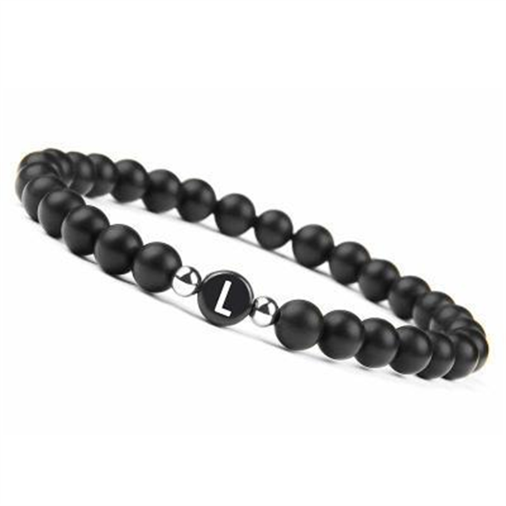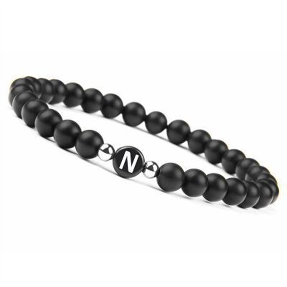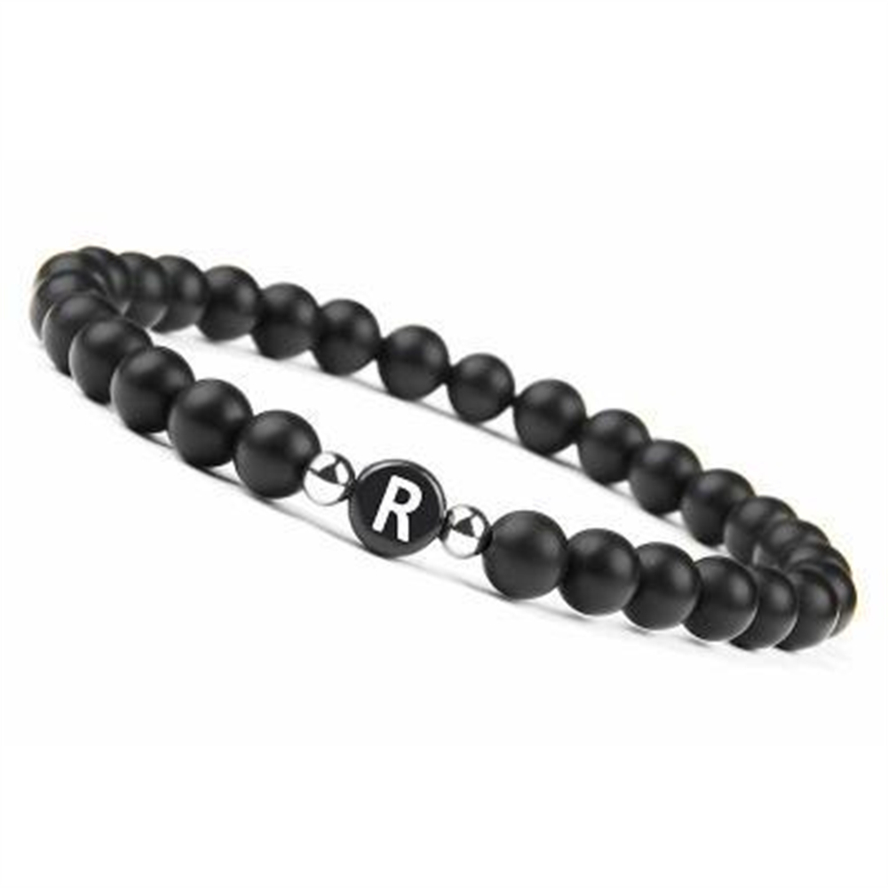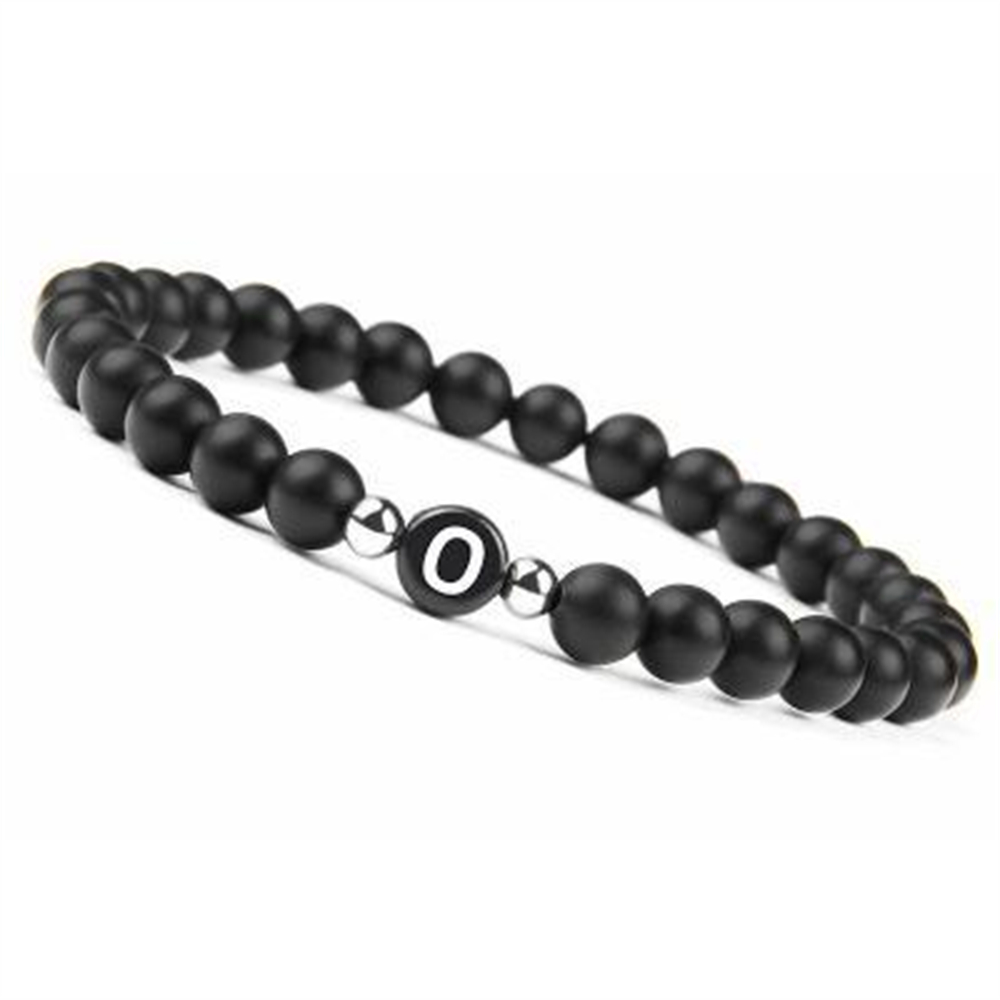 Pulsera de 26 letras de piedra blanca y negra hecha a mano DIY para mujeres, hombres, joyería para parejas, pulsera elástica de cuentas de la suerte de la amistad, para niños