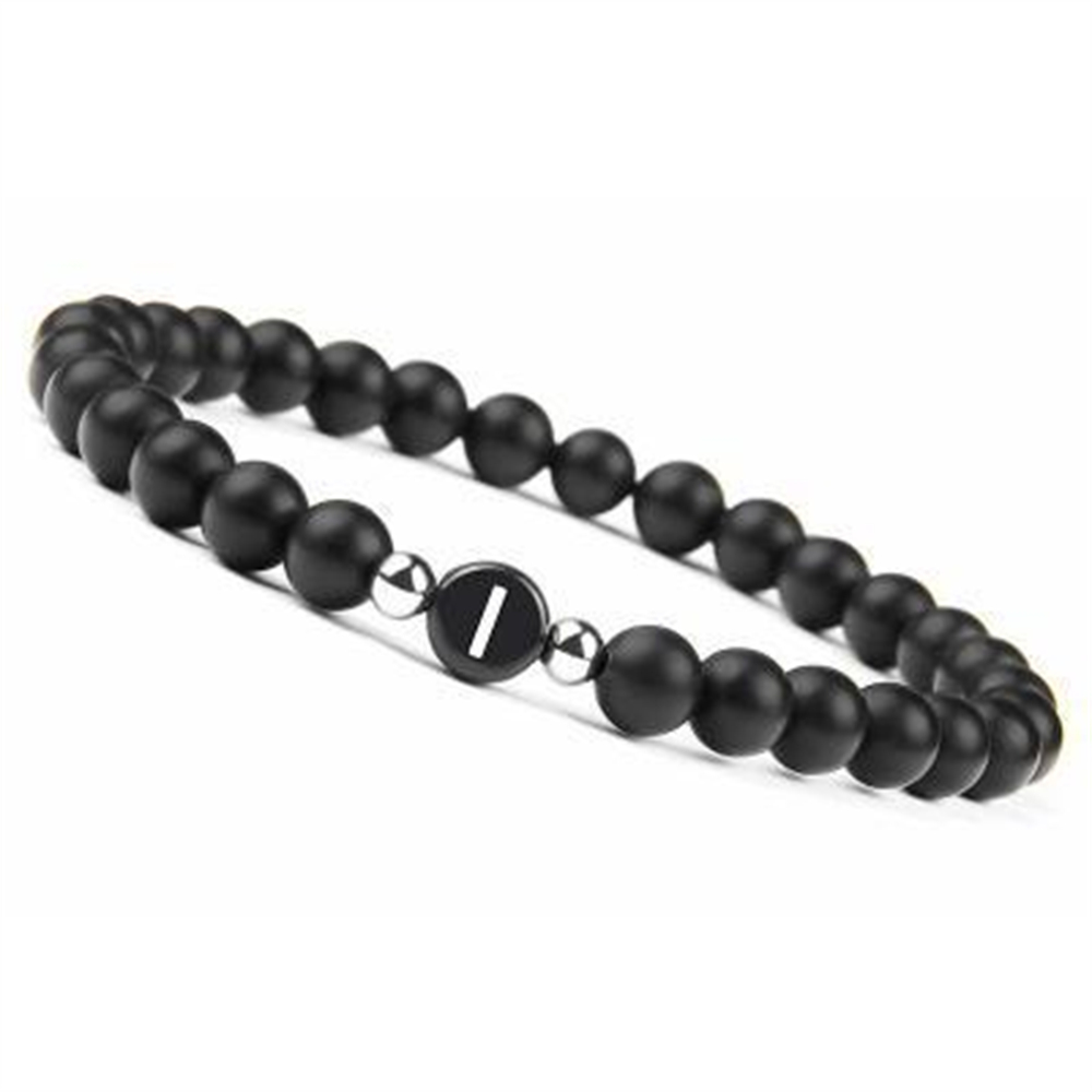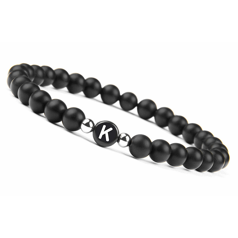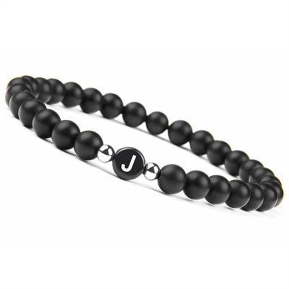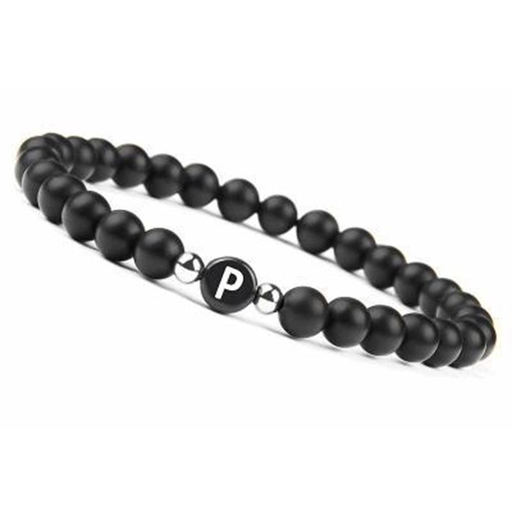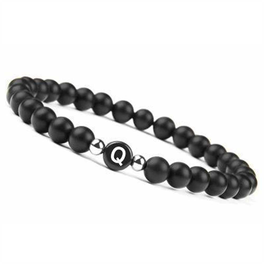 Pulsera de 26 letras de piedra blanca y negra hecha a mano DIY para mujeres, hombres, joyería para parejas, pulsera elástica de cuentas de la suerte de la amistad, para niños