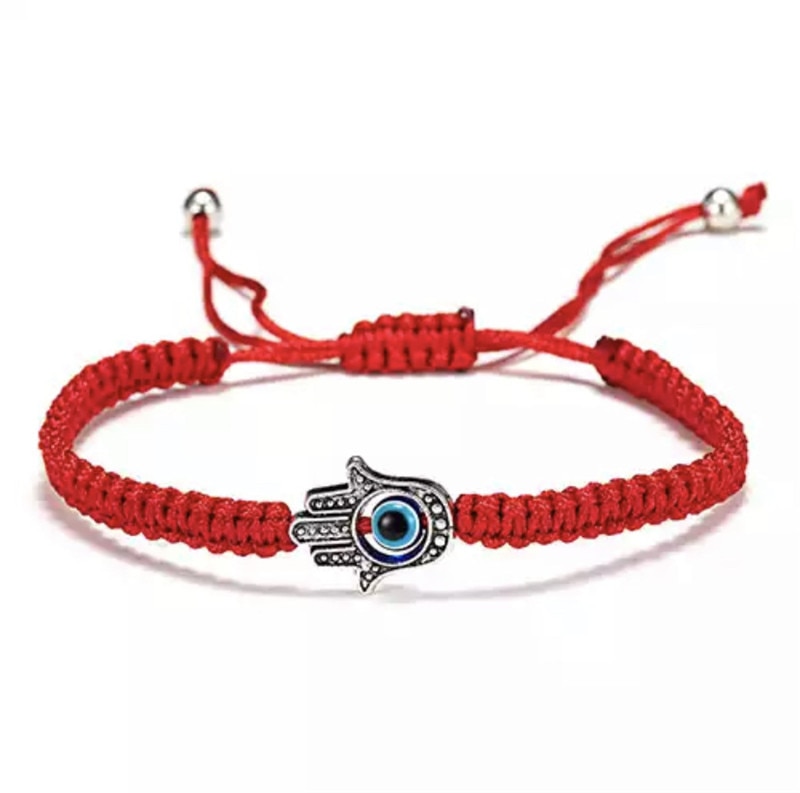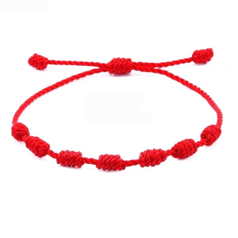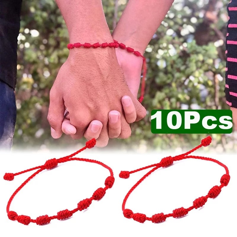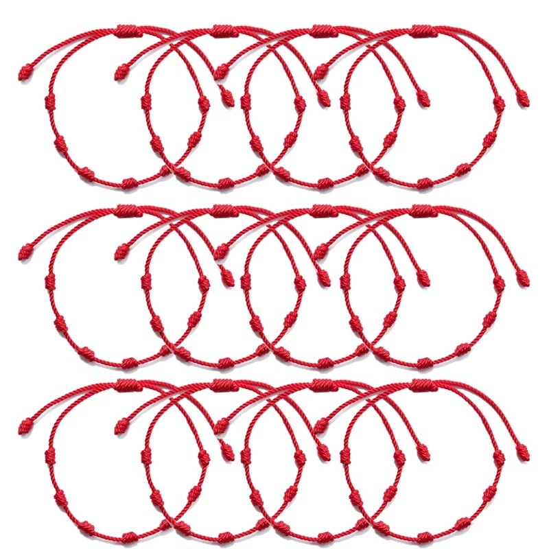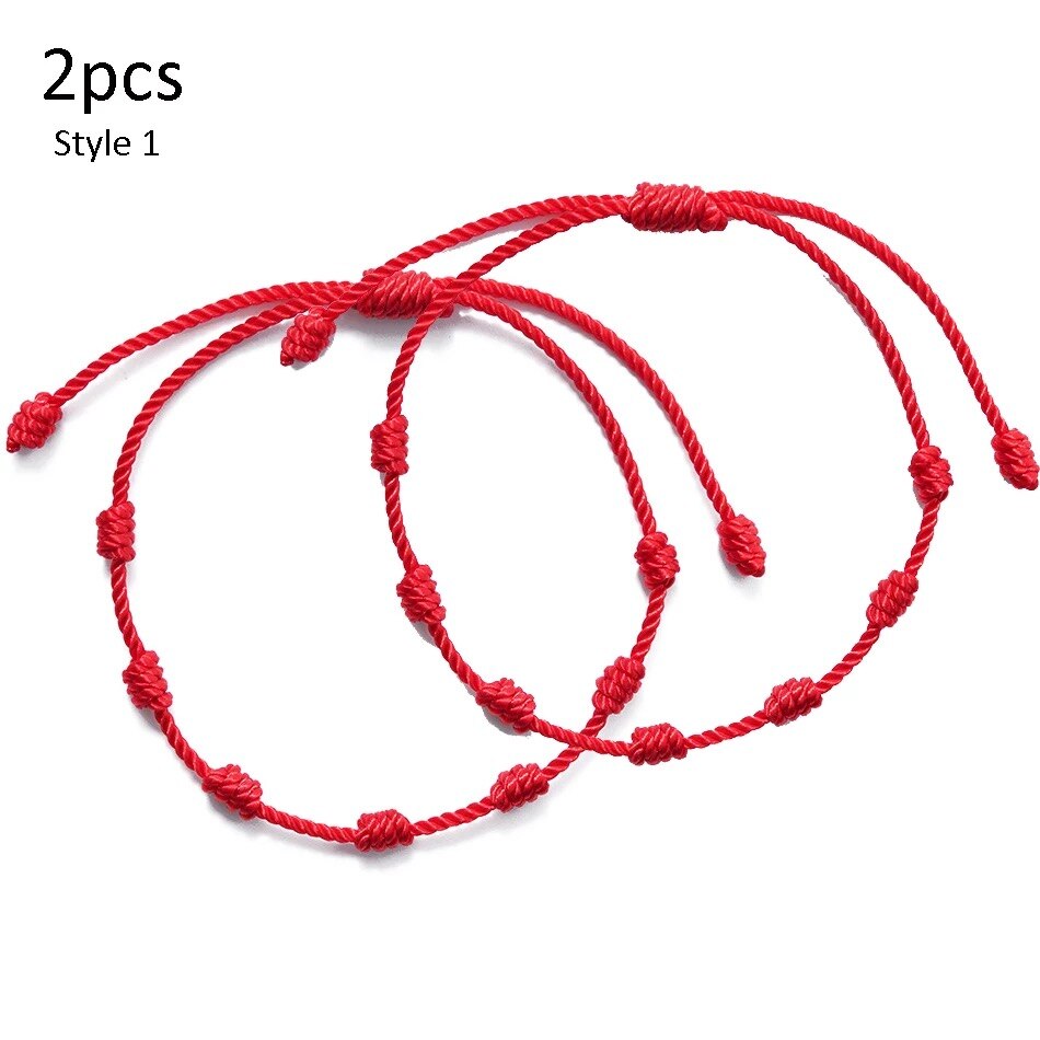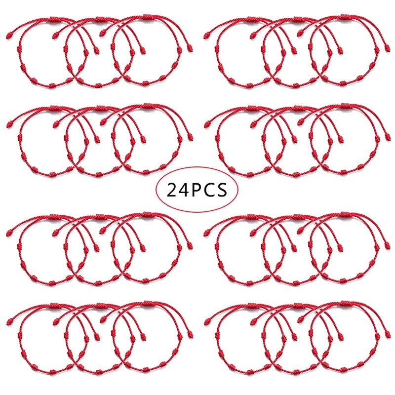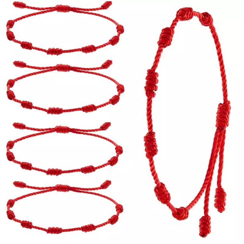 Pulseras de cuerda de 7 nudos hechas a mano, pulseras de cuerda roja con abalorios de mal de ojo, pulsera de Amistad tejida ajustable apilable