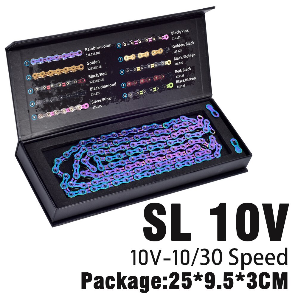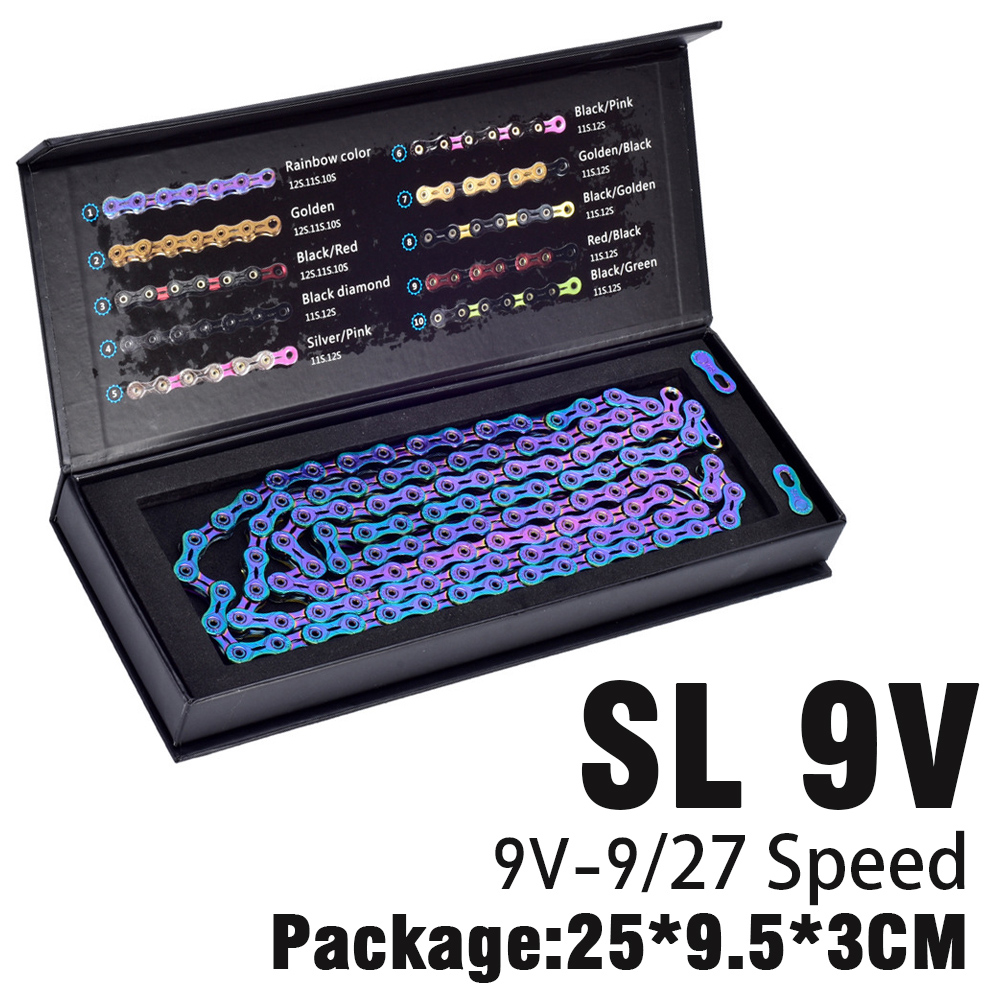 SUMC-cadenas de colores para bicicleta de montaña, accesorios para bici de 9V, 10V, 11V y 12V, cadena de arcoíris plegable con hebilla mágica
