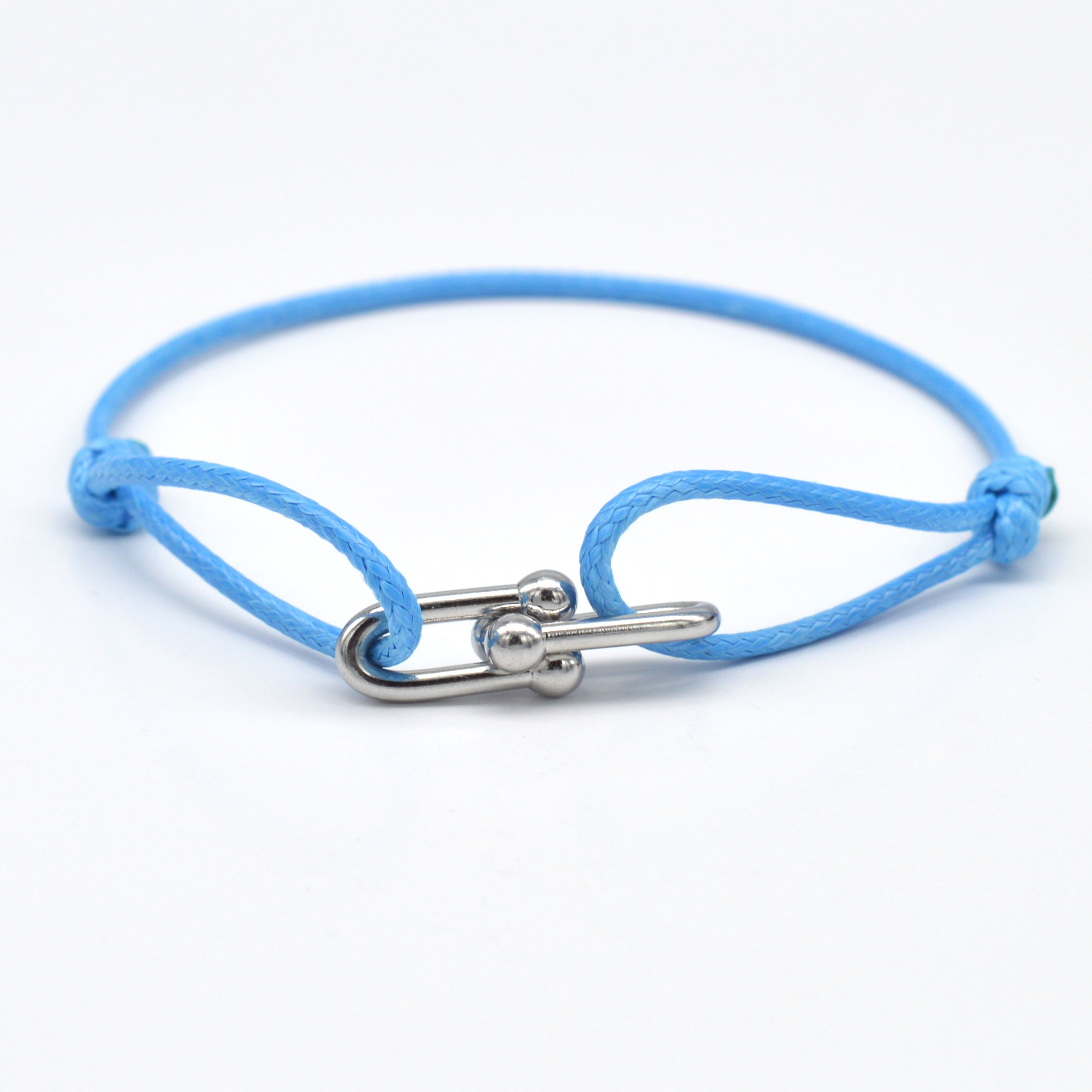 Zalman-pulsera con hebilla de herradura de bambú Simple, cinta trenzada, pulseras de cuerda ajustables DIY, joyería de acero inoxidable para hombres y mujeres