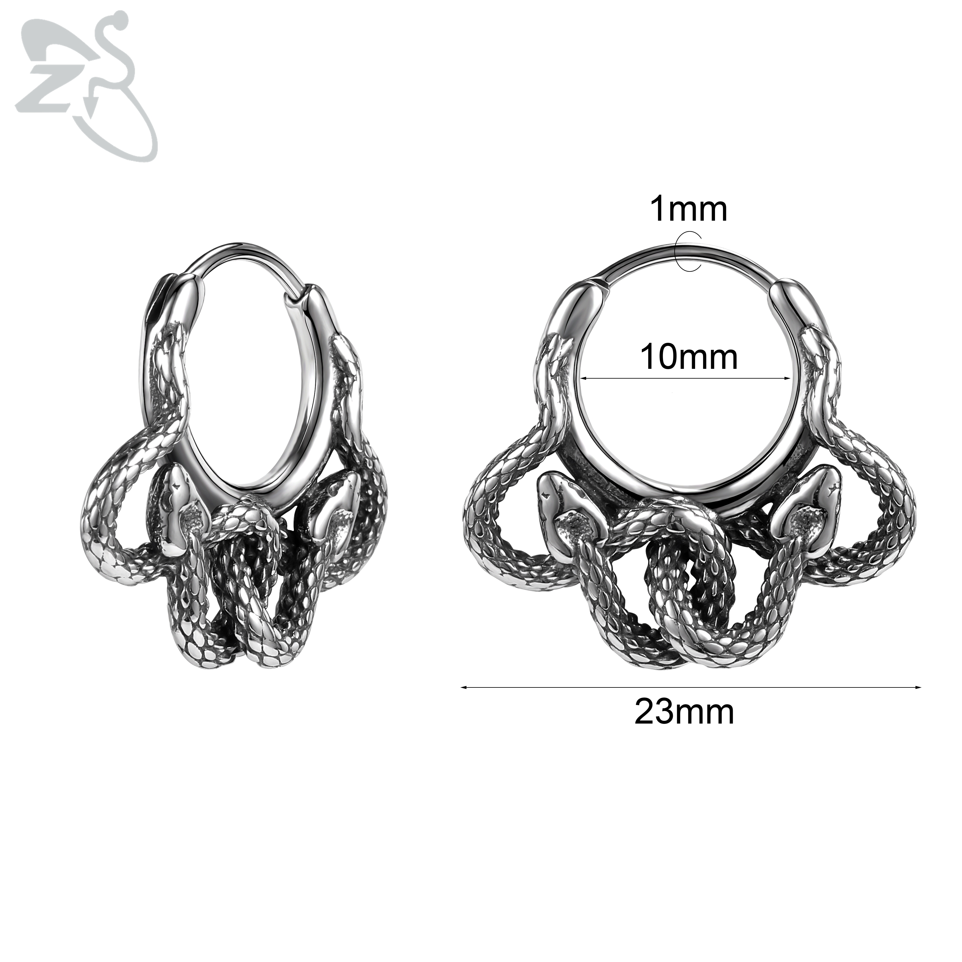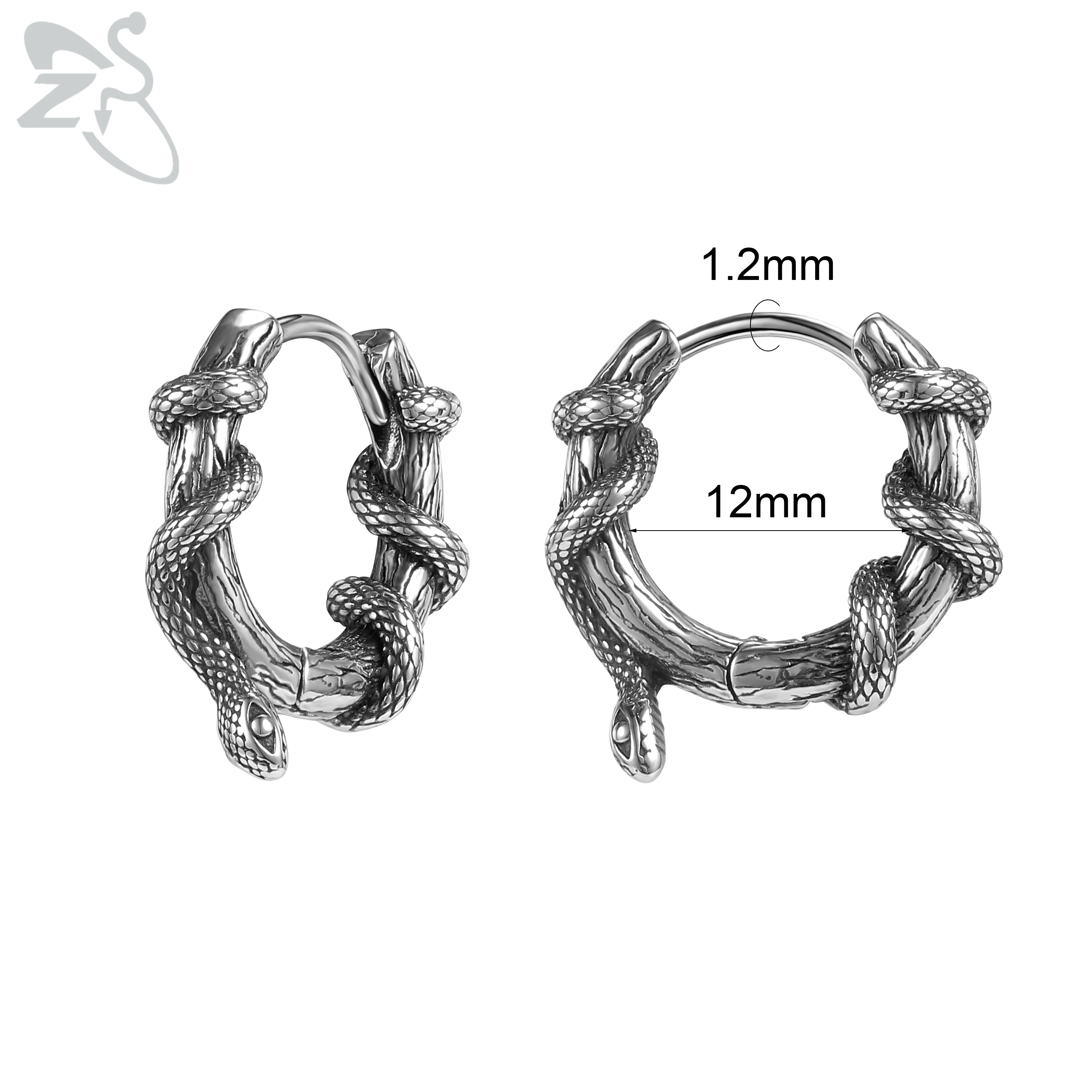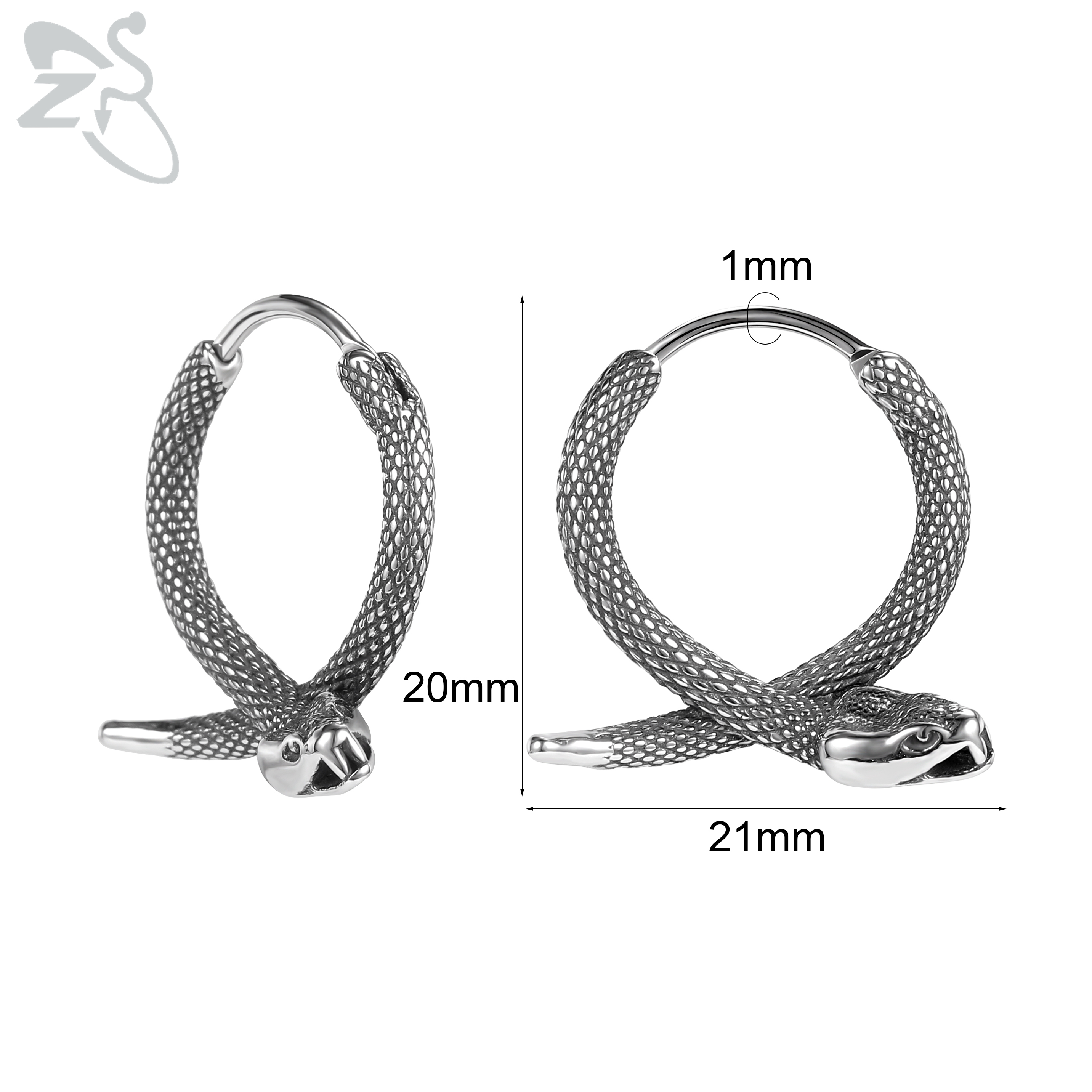 ZS-pendientes de aro de acero inoxidable para hombre, aretes redondos de calavera, serpiente, gótico, Punk, Rock, colgante, cartílago de hélice, 18G, 2 unidades por lote