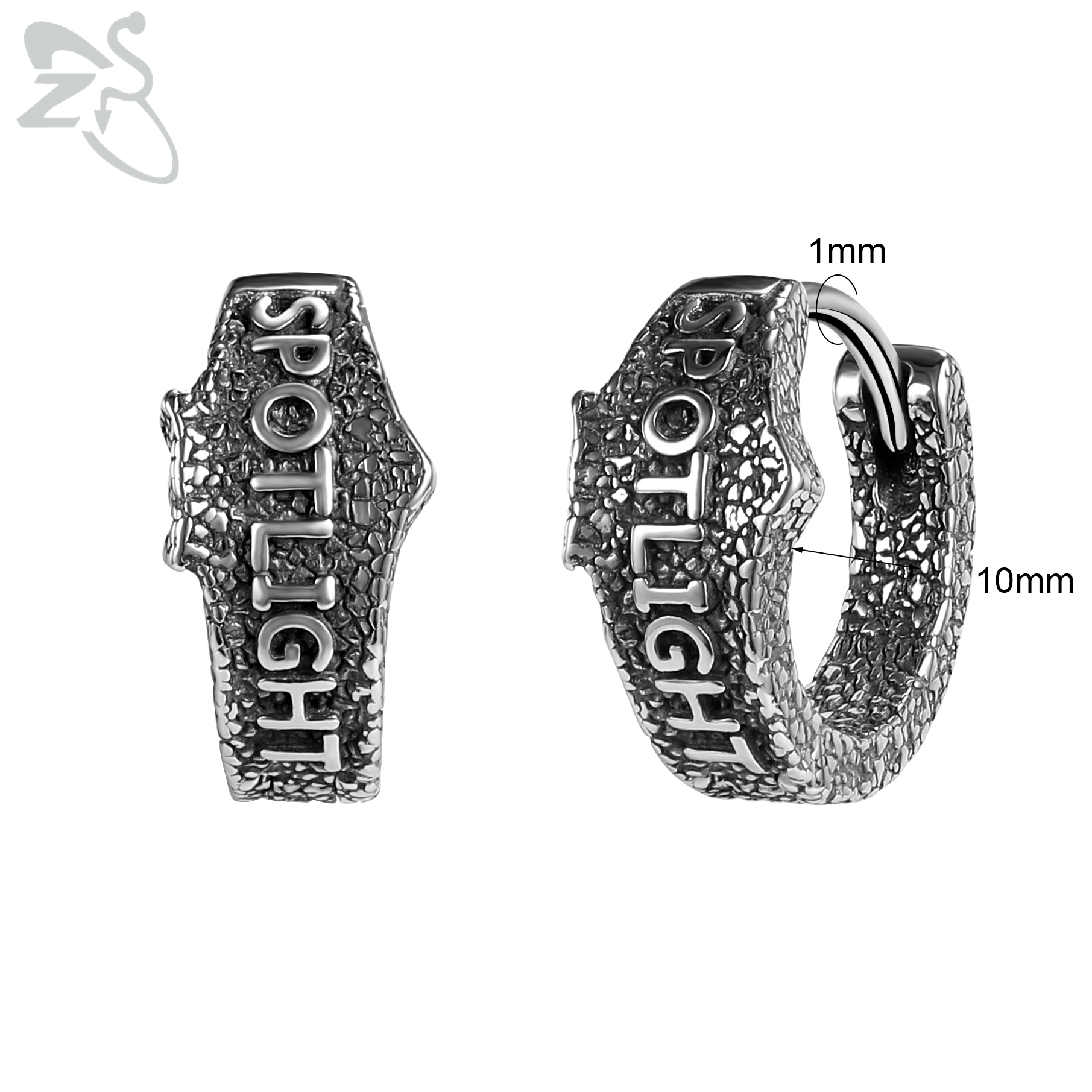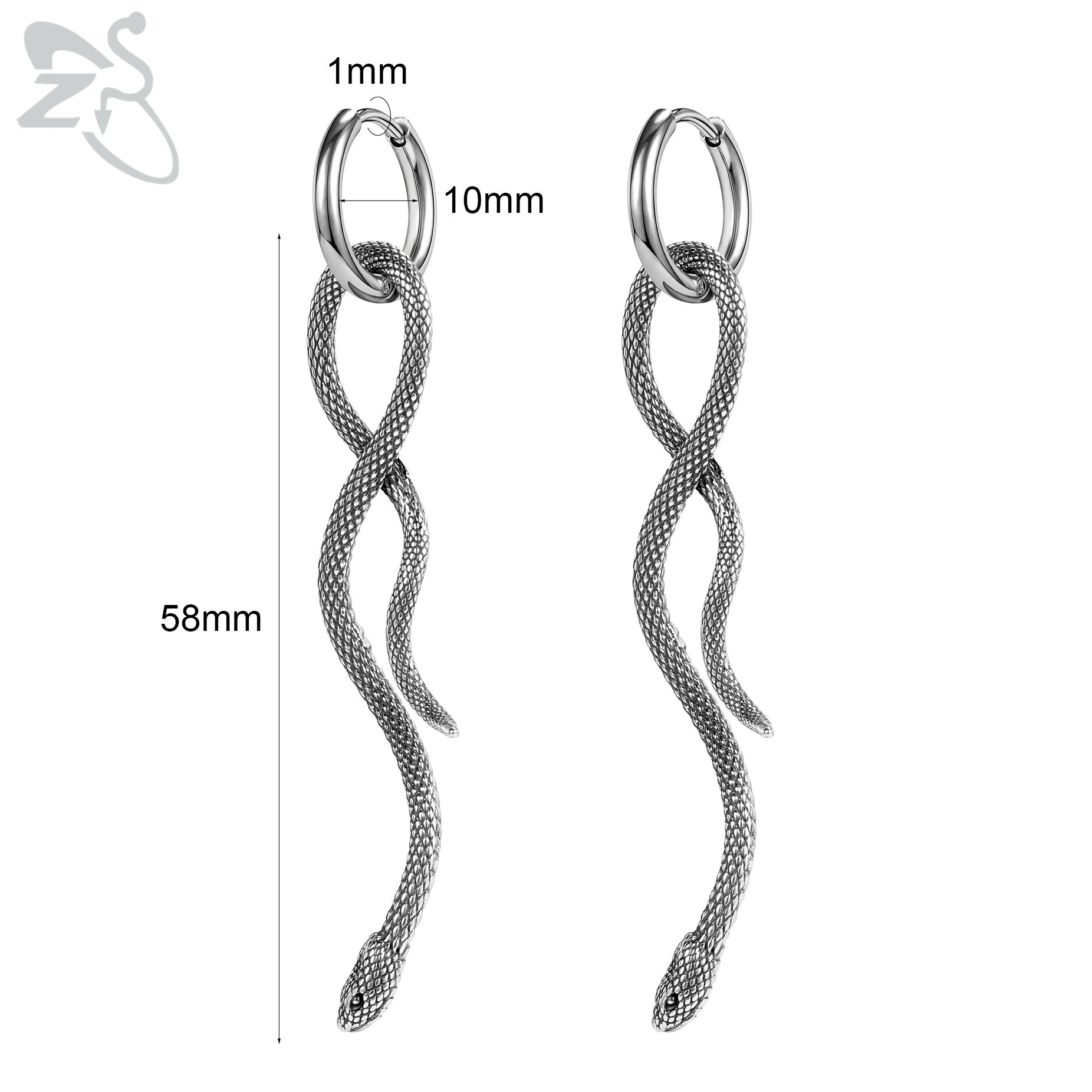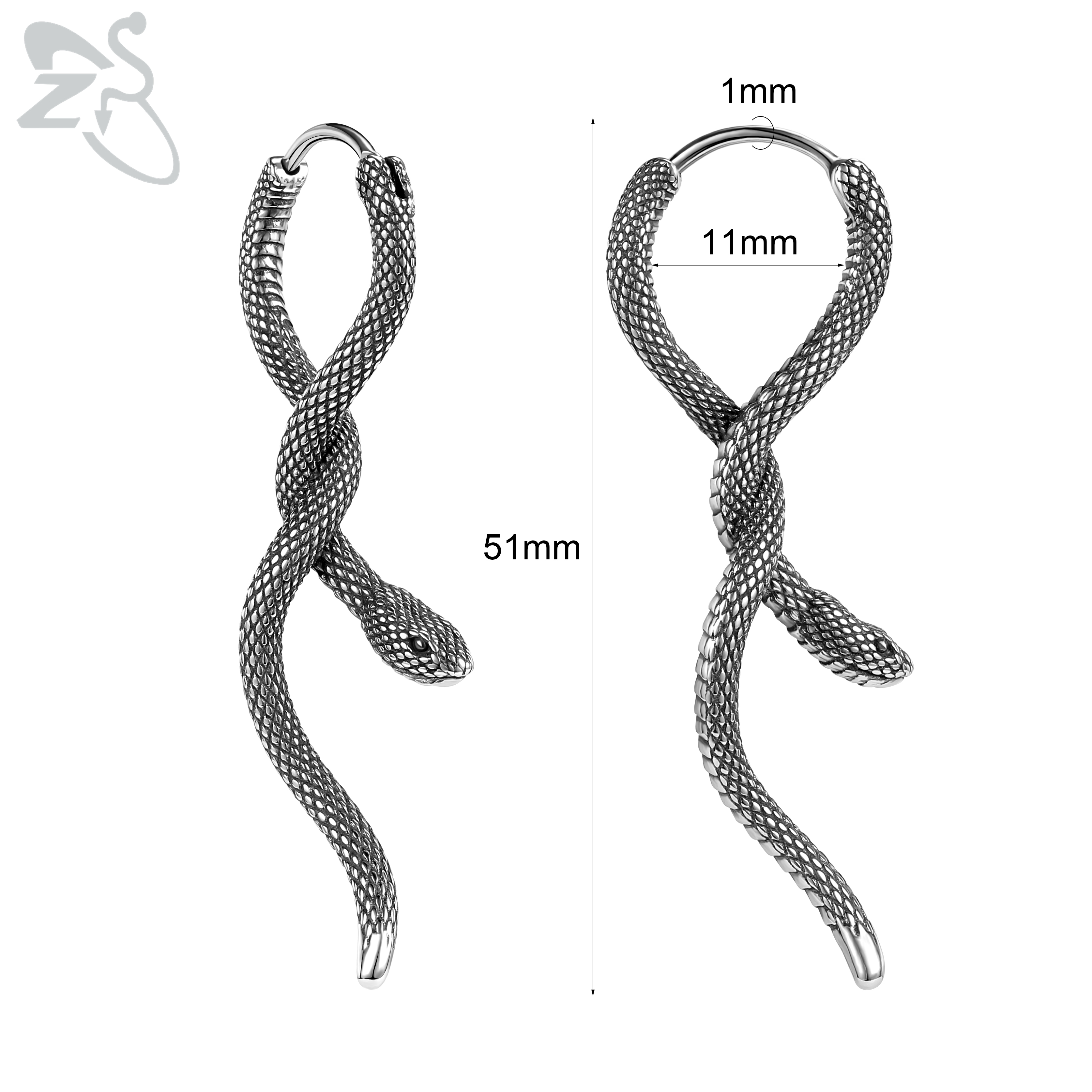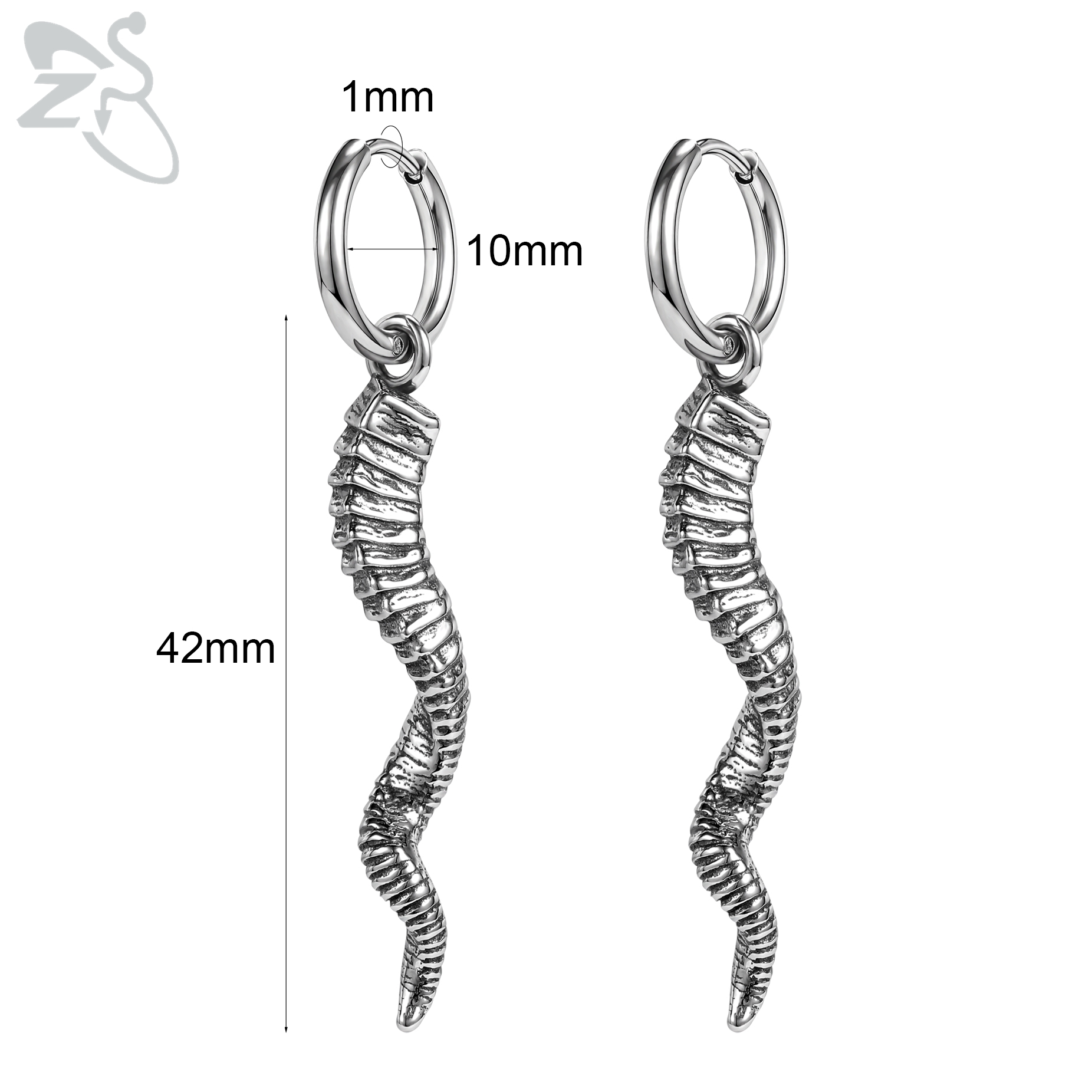 ZS-pendientes de aro de acero inoxidable para hombre, aretes redondos de calavera, serpiente, gótico, Punk, Rock, colgante, cartílago de hélice, 18G, 2 unidades por lote